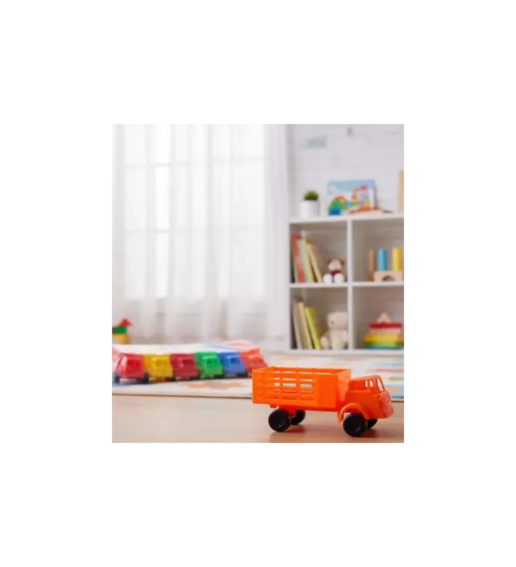 Este juguete permite a los niños convertir una figura robusta de Guerrero Mecánico con predominio de colores naranja, azul y verde, fomentando el juego imaginativo y la coordinación.